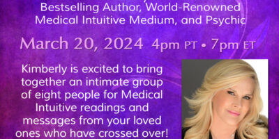 Join Kimberly Meredith, bestselling author and world-renowned Medical Intuitive Medium, Trance Channeler and Psychic Healer for a special intimate evening as she connects you with your loved ones in spirit!